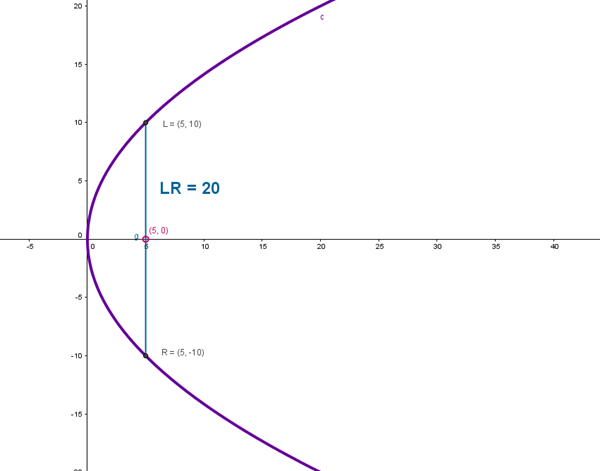 Una parábola tiene su vértice en el origen y su lado recto mide 20 unidades. Si su eje de simetría coincide con el eje X