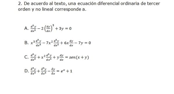 MatemáticasProfesoresCálculo Andres Palomino el 15 feb. 17 Quien me soluciona problema ecuación diferencial Seguir Siguiendo Dejar de seguir 1 respuesta Respuesta de Lucas m 1 1 Lucas m, No es el conocimiento, sino el acto de aprendizaje, y no la... ;)Hola Andres!La C:Es EDO ya que solo contiene derivadas respecto la variable independiente (x)Es de 3r orden (la derivada de mayor orden)No lineal ya que hay una derivada (la primera) con coeficiente ySaludos;);) el 15 feb. 17 - Anónimo ahora mismo Añadir comentario Usa los comentarios si quieres aportar algo a esta respuesta. No los utilices para preguntar algo nuevo. Cancelar Enviar