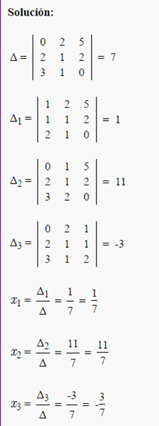 Resuelva los siguientes sistemas de ecuaciones utilizando el método de Cramer.