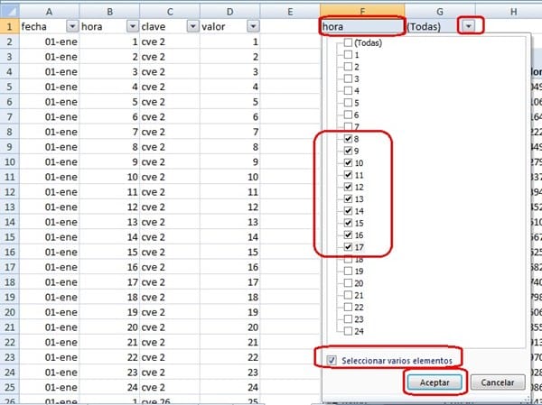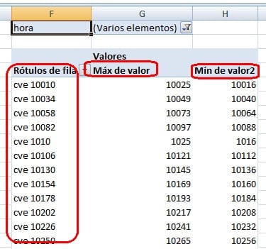 La fecha y la hora son consecutivos a lo largo de 24 hrs; desde la hora 1 hasta la hora 24, durante el día 1. Después de ello, la clave en celda C cambia y los datos siguientes continúan con el día 1 desde la hora 1 hasta la hora 24. Después que se tiene el último registro de la clave, la serie continúa con el segundo día y desde la hora 1 hasta la 24 otra vez. Requiero encontrar los datos máximos y mínimos en los intervalos entre las horas 8 y 17, entre los días 1 al 31 para cada una de las claves en col C. Lo hago con una fórmula matricial condicional =min(si(argumento)) pero con >10k registros, el uso de memoria y tiempo de respuesta es exagerado. ¿Me ayudan con un macro?
