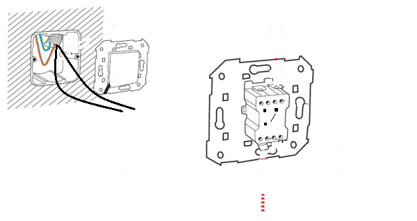 Además, de la pared sólo salen los dos cables negros mencionados anteriormente. Los de fase (marrón) y tierra (azul-amarillo) salen de un tubo y entran por otro, sin que pueda usarlos (como en el dibujo).