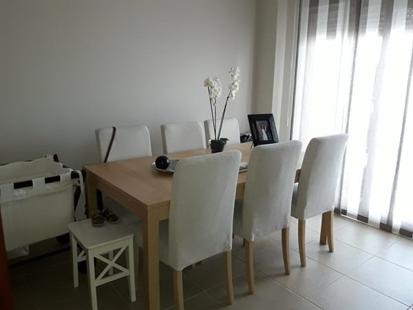 Te aconsejo, si quieres darle un toque de dinamismo a este espacio, puedes jugar combinando otros detalles -como flores, una alfombra bajo esta mesa de comedor, adornos decorativos como velas, marcos de fotos o jarrones, cojines para el sofá, cuadros, lámparas- con otras tonalidades o colores más vivos, como ocre, rosa, azul turquesa o verde... dependiendo de tu gusto.