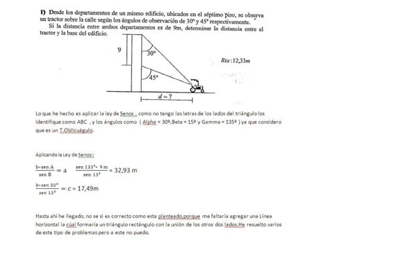 Este ejercicio lo acompaño con una imagen que tiene todos los detalles, he realizado bastantes de este tipo de ejercicios sobre ángulos de Depresión, pero no lo puedo resolver.