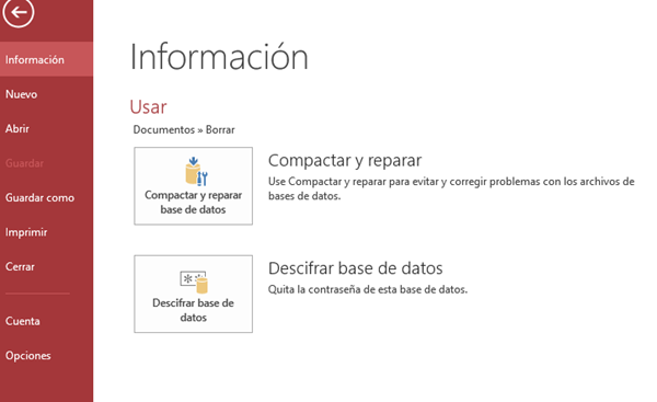 Mi problema es que tengo una base de datos con su contraseña. La quiero eliminar y no lo consigo. Entro en modo exclusivo, y me voy a herramientas. El problema es que parece que access no reconoce que tenga contraseña. La unica opcion que me da es "cifrar con contraseña". Como es lógico, pincho y me pide contraseña y que repita contraseña. Me da error. Da igual lo que meta. Si es la contraseña que ya tiene, da error... Si meto otra para probar, tambien error.