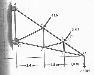 Determine el valor de las fuerzas en cada uno de los elementos que conforman la estructura que se muestra en la figura,