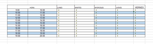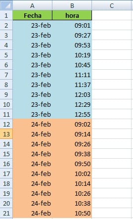 Entonces, en la columna E pones la fecha, en la F la hora inicial, en la G la hora final