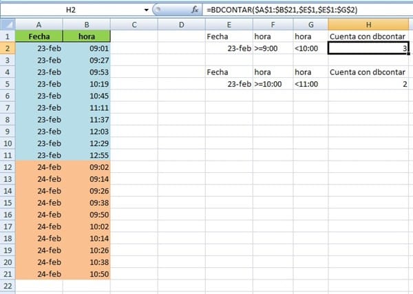 Con Bdcontar, prácticamente tendrías que capturar una fórmula por cada fecha y cada hora. Por ejemplo, si tus datos están así: