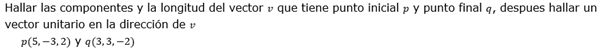 Hallar las componentes y la longitud del vector v que tiene punto inicial p y punto final que, después hallar un vector unitario