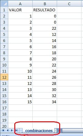 En A1 puedo tener valores del 1 al 15 y en B1 que seria la celda de resultado que hacer una fórmula con lo siguiente: Si en A1 eres 1 que cambie a 0 en B1, o si eres en A1- 2 a 0, o si eres en A1-3 a 22 y así son 15 combinaciones