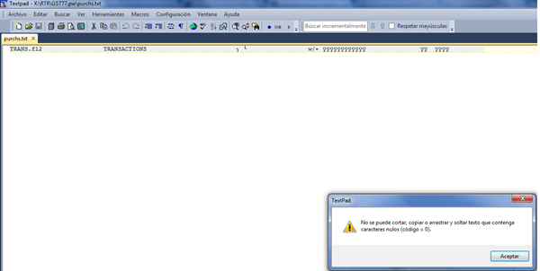 Pero, ¿ya has conseguido que lea el PURCHS.TXT en su ubicación? ¿Era el problema del espacio?