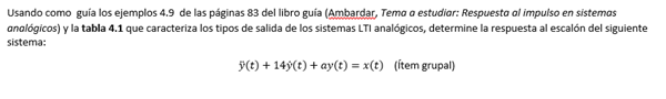 3. Usando como guía los ejemplos 4.9 de las páginas 83 del libro guía (Ambardar, Tema a estudiar: Respuesta al impulso en sist
