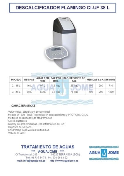-Insol flamingo 38 litros, valvula clack CI CC electrónica estadística volumétrica en noryl