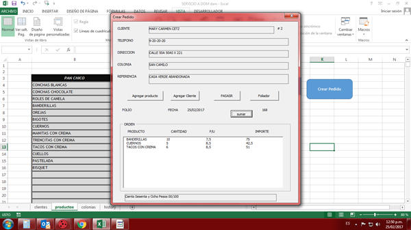 En este caso tengo los datos de un CLIENTE, cantidad y cantidad en letra