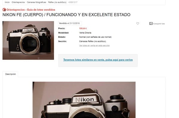 Posible precio de Nikkon Fe y Objetivo Nikkor 50mm 1/2