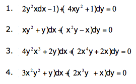 De las siguientes ecuaciones diferenciales, cuáles de ellas “No” son exactas: