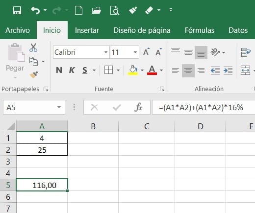 Quiero que en la celda a5 me arroje una multiplicación y a lavez el iva