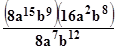 $$\begin{align}&(2a^5b^3)^3 (4ab^4)^2/ 8a^7b^{12}\end{align}$$
