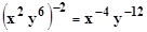 $$\begin{align}&(x^{-3}y^2/x^{-5}y^{-4})^{-2}\end{align}$$