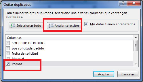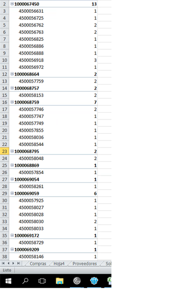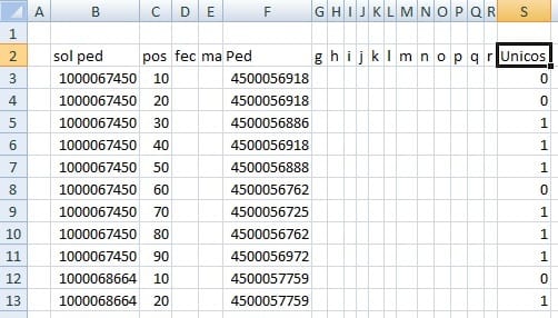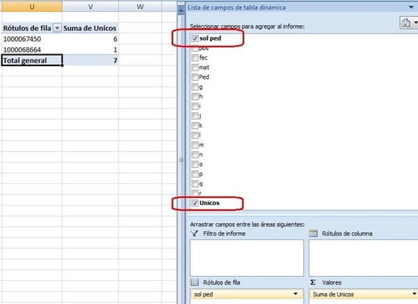 Tengo una columna con numero de solicitud y otra con numero de pedido quiero saber cuantos pedido existen por solicitud