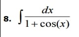 MatemáticasProfesoresIngeniería IndustrialCálculo Andres Palomino el 1 mar. 17 Quien Resolver aplicando las propiedades básicas, las siguientes integrales Seguir Siguiendo Dejar de seguir 1 respuesta Respuesta de Lucas m 1 1 Lucas m, No es el conocimiento, sino el acto de aprendizaje, y no la... ;)t^2=tan(x/2)2tdt=(1/cos^2(x/2))•1/2•dx2tdt=[2/(1+cos(x))•1/2•dx=1/(1+cos(x))•dx==>1/(1+cosx) dx=2tdtIntg 2tdt= t^2=tan(x/2)+C el 1 mar. 17 - Anónimo ahora mismo Añadir comentario Usa los comentarios si quieres aportar algo a esta respuesta. No los utilices para preguntar algo nuevo. Cancelar Enviar