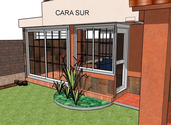 Cerramiento porche zona Sur; aluminio o PVC, ¿Laminas de control solar con toldo?
