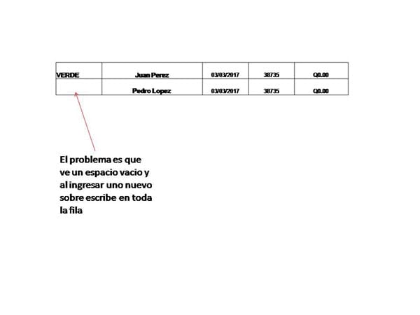 Pero si NO vas a poner el segundo dato en la columna A, entonces se debe incrementar en 2 para encontrar la siguiente celda vacía.