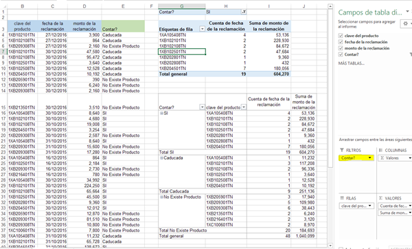 Al efecto de mandarte esta imagen, coloqué la tabla a la derecha, pero mientras la construyes puedes indicarle que la muestra en otra hoja (que suele ser lo usual y más práctico)