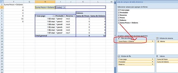 Necesito hacer que los valores de una tabla dinámica que sean 0 no aparezcan en el informe.