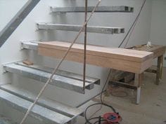 La escalera la quiero que se vea suspendida porque los pasos se ven únicamente anclados al muro !