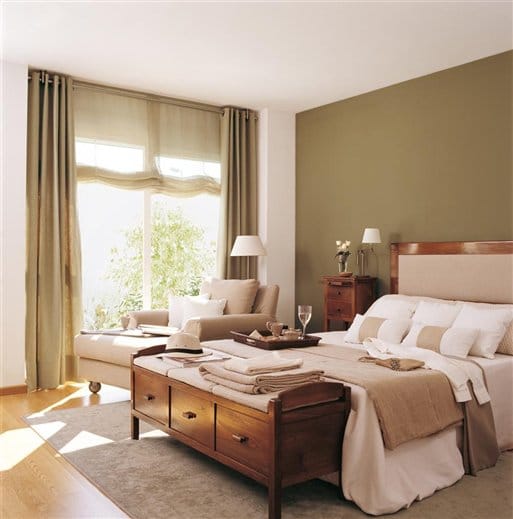 No obstante, si quieres un resultado fresco, también puedes colocar cortinas que combinen con el color de pared escogido. Por ejemplo, que tengan detalles de ese color-como rayas-.
