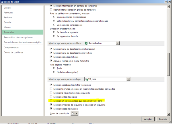 Necesitaría que solamente en una celda determinada que me interese, le salga el cero, cuando en la operación sea cero.