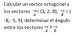 5. Calcular un vector ortogonal a los vectores = (3, 2, 8); = ( -8, -5, 9), determinar el ángulo entre los vectores Y