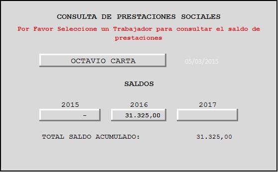 En esta consulta yo elegi otro trabajador pero deberia cargarme el saldo del año 2015, 2016 y 2017 solo me esta tomando la primera fila de la tabla del acumulado de prestaciones sociales y me trae el saldo del primer trabajador es decir la primera fila...