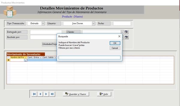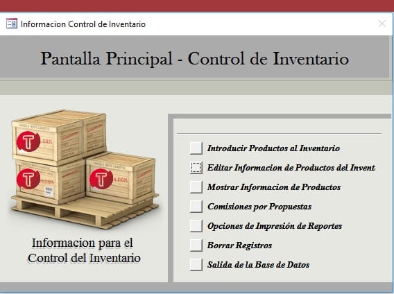 Tengo una pantalla Principal y en la segunda opción Editar Información de Movimientos del Inventario.