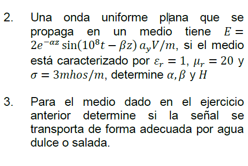 Bases de datosIngeniería InformáticaCiencias e IngenieríaIngeniería ElectrónicaTelefonía y Telecomunicaciones Jonathan Prieto el 16 mar. 17 Hallar con base a una onda plana Cordial saludo, necesita hallar los valores descritos anteriormente Seguir Siguiendo Dejar de seguir