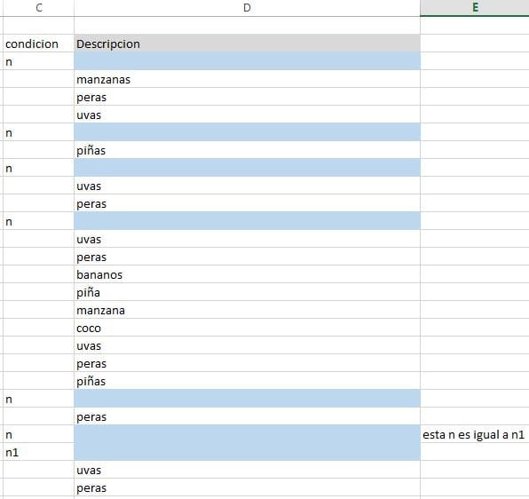 Así sucesivamente en toda la columna, los rangos o cantidad de filas son diferentes.