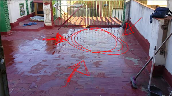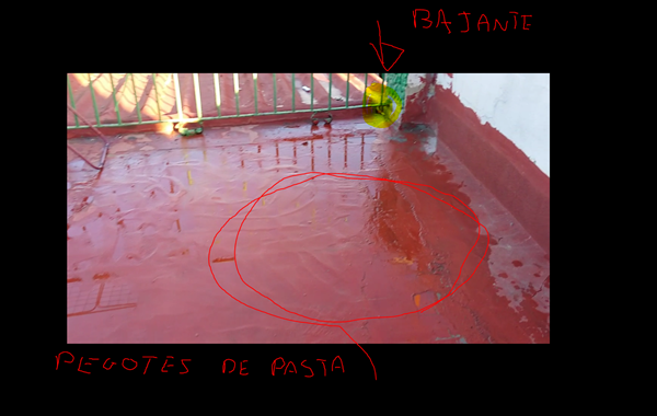 En estas imágenes se ve como echaron la pasta donde se queda charco pero todavía se queda, y me toca barrer con la escoba para quitarla y tirarla por el desagüe.
