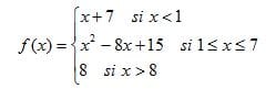 Sea la función definida a trozos: