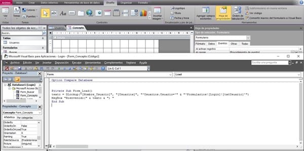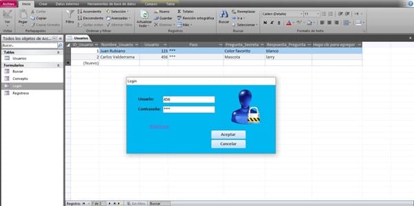 Tengo el formulario de LOGIN en ACCESS que funciona correctamente, luego de que valida el usuario me dirige a la siguiente página. Quiero que con el usuario numérico que se ingresó para la validación de LOGIN me traiga en el siguiente formulario, el nombre completo de ese mismo usuario. Estuve investigando y encontré que la función DLOOKUP puede funcionar, pero no se que estoy haciendo mal. Espero puedan echarme una mano. Adjunto imágenes