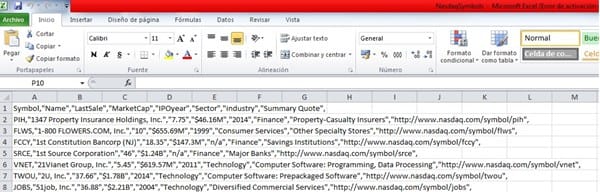 Tengo una hoja Excel con un listado de empresas que cotizan en bolsa.