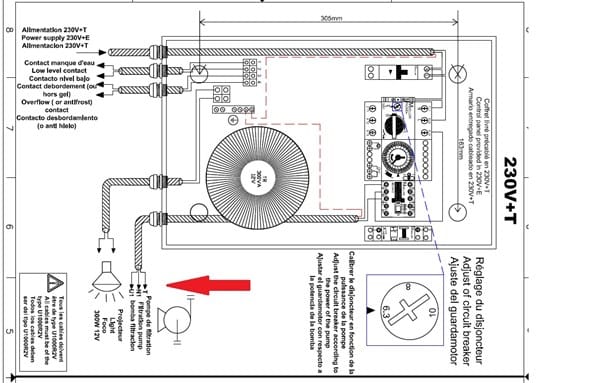 He perdido el esquema del cuadro eléctrico astralpool, no hay manera de conseguirlo, ¿me pongo en contacto con ustedes para ver si pueden decirme si en la regleta blanca "marche forcèe" es donde se conecta la bomba? Sufrimos un derrumbe de la caseta máquinas piscina y tuvimos que sacar los aparatos con urgencia. No pudimos entretenernos en anotar conexiones.