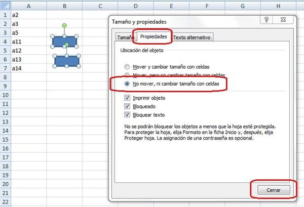 Y para que los botones no se copien, selecciona tu botón o todos los botones, presiona botón derecho del mouse, sobre alguno de tus botones, en el menú que te aparece, selecciona Tamaño y propiedades. En la pestaña de propiedades, selecciona la opción "No mover, ni cambiar tamaño con celdas"