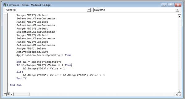 Tengo este formulario con macros, en el que lleno todos los campos y al dar clic en guardar, lleva los datos recogidos a otra hoja, lo que quiero en este caso es que en el espacio en blanco de "Baño" incremente automáticamente su valor en cada registro, empezando en "1" y terminando en "4", y que al llegar a 4, reinicie nuevamente a 1.