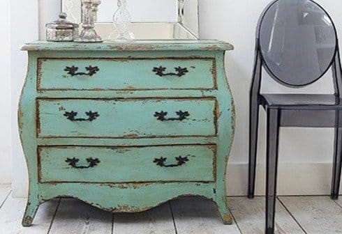 Un mueble que te iría a la perfección con este estilo, podría estar pintado con la técnica del patinado efecto vintage. Te mando una foto de ejemplo y cómo conseguir esta técnica, aunque hay tiendas de decoración que también venden los muebles nuevos con este efecto directamente.