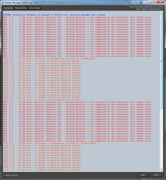 Cuando procedo a ejecutar el renderizado, 3ds Max 2016 me muestra una ventana con varios mensajes de error, ver adjunto:
