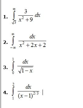 Evaluar las siguientes integrales impropias si convergen o divergen: