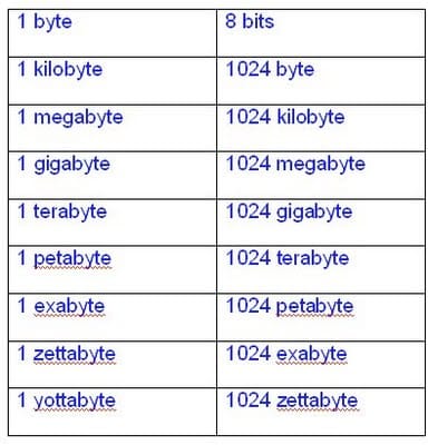 1 Gigabyte (GB)1 000 000 000 bytes 1 GB