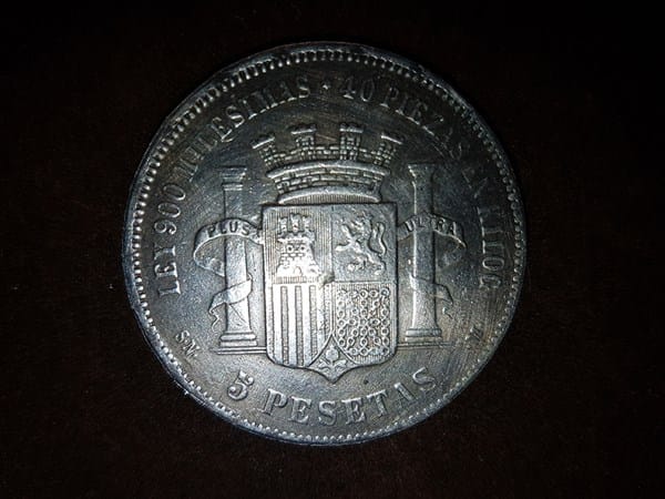 Posible valor de una moneda de 5 pesetas del año 1869.