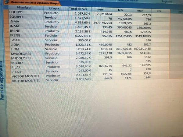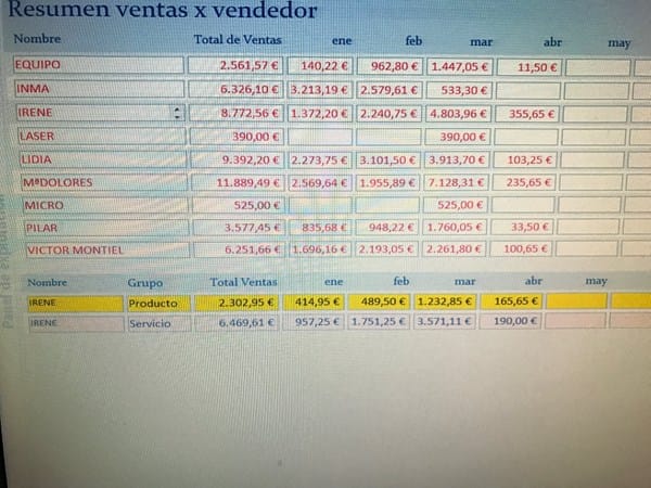 Pero necesito poder presentar en el formulario los datos sumados de cada vendedor y por meses. Ejemplo: