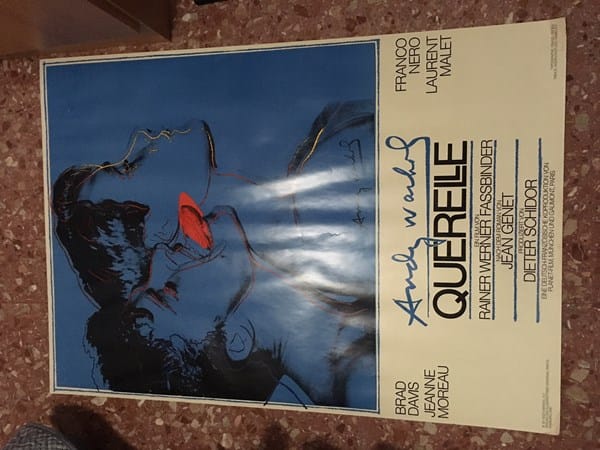 Tengo un póster muy antiguo, data de 1982 y pertenece a la película "Querelle" dirigida por R.W. Fassbinder, es de color azul y en el mismo póster pone hecho por Andy Warhol, tipografía de Franzl Froeb y es unas dimensiones muy especificas. Lo tengo en muy buen estado. He visto que hay muy pocos de este estilo en internet y cada uno pone un valor muy diferente. Me gustaría conocer alguien que pudiera aconsejarme o tasármelo, gracias.